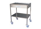 Pojazdný nerezový nástrojový stolík. Horné plato je lisované so zaoblenými rohmi. Kolieska s brzdou.