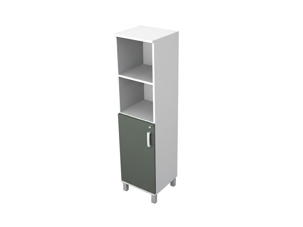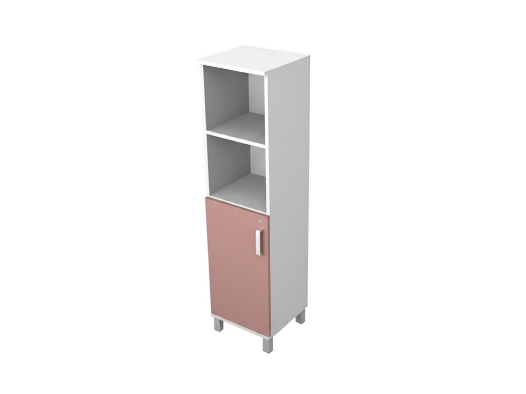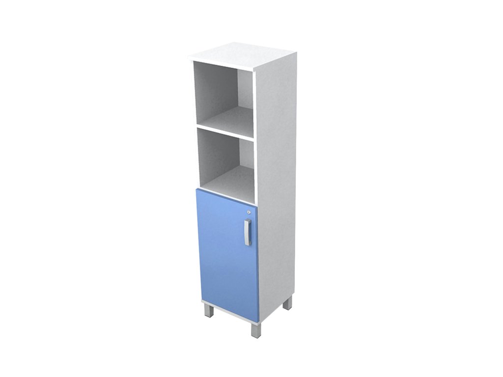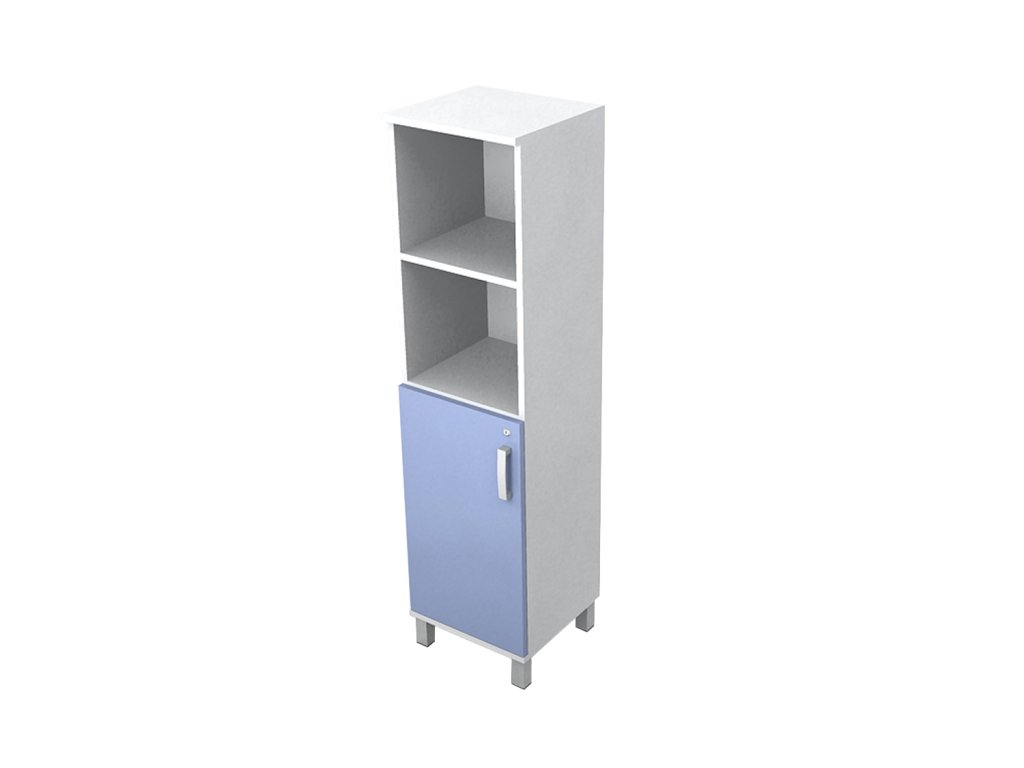 Skriňa do ordinácie stredná, úzka, 1/2 dvierka, 1/2 police.